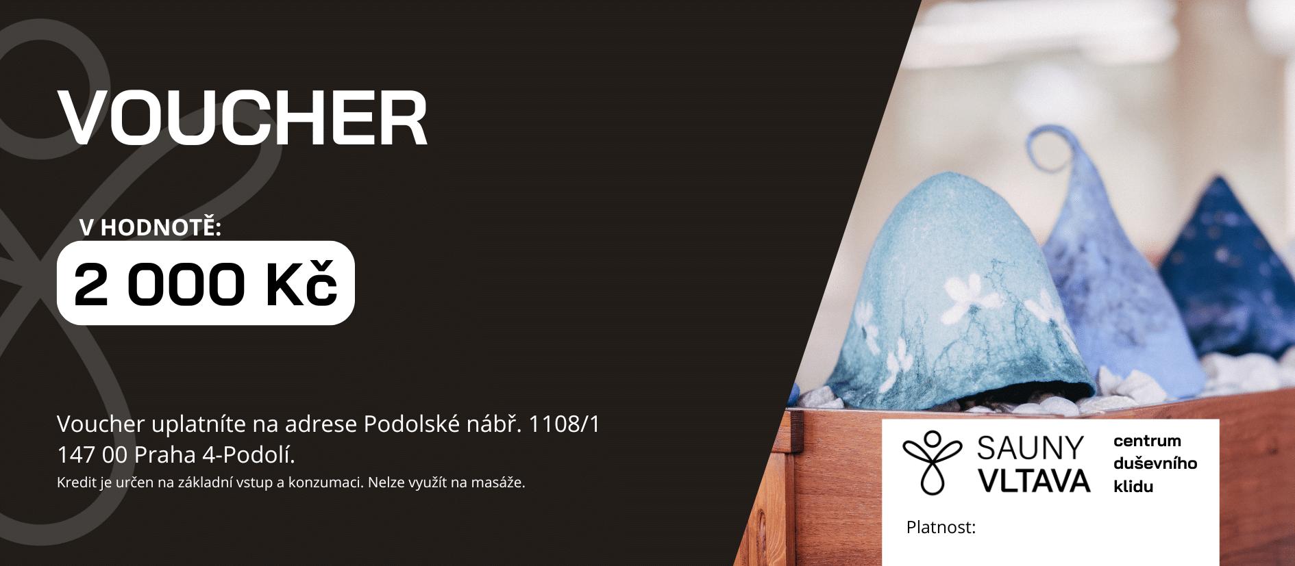 Dárkový poukaz v hodnotě 2 000 Kč uplatníte v Saunách Vltava v rámci kreditu, který Vám nahrajeme na Vaše jméno při příchodu do saun.